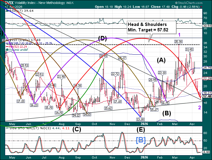 Today’s premarket VIX declined to 17.79 this morning, which may have completed the correction.  The Cycles Model suggests the VIX may be due to be energized by the weekend.